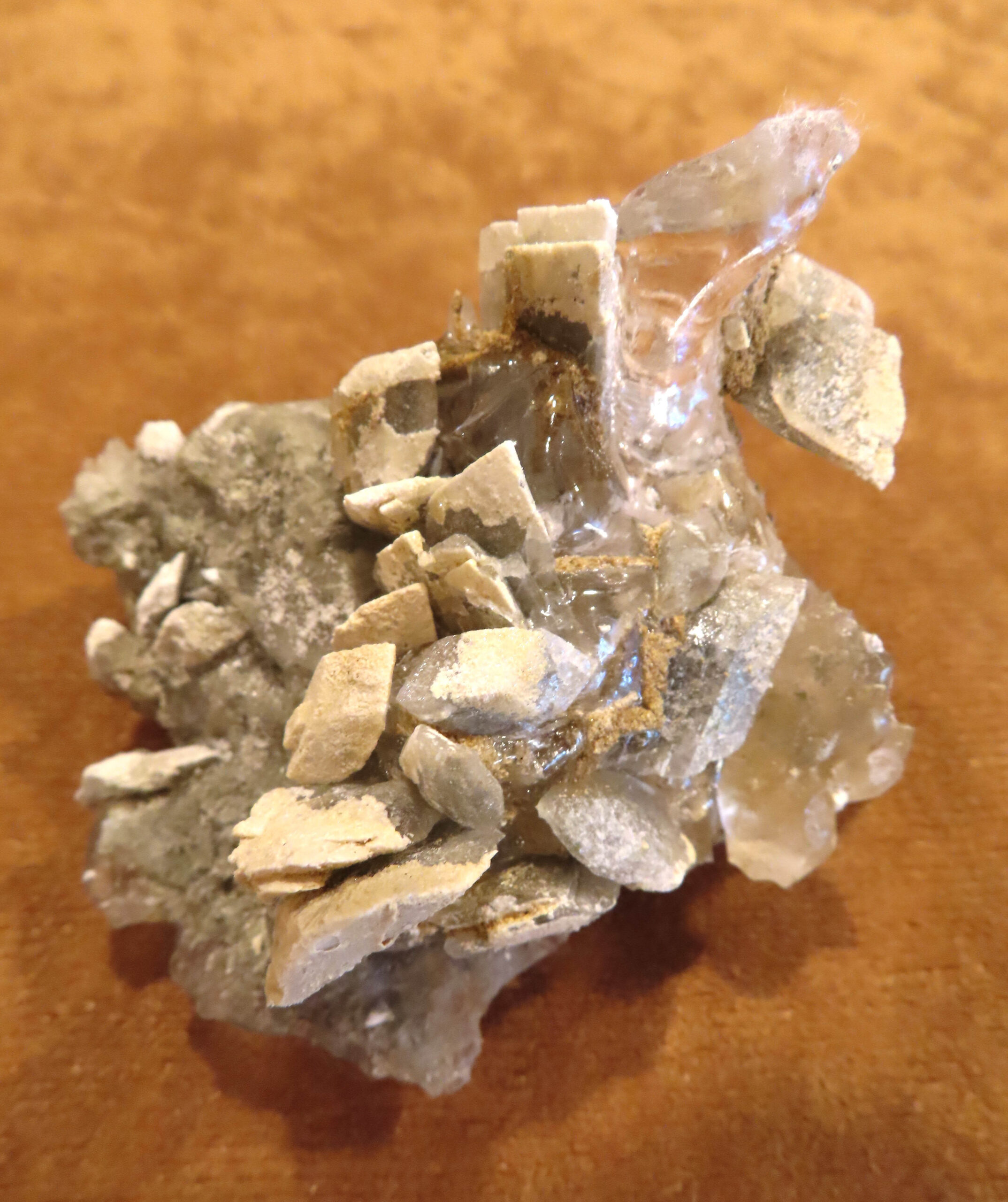 collect. Ed had a polished slab of this material, and it looked like a stained glass window with the sun shining through it. Some of us attacked the hard rock vein directly with hammers and chisels, while others were happy